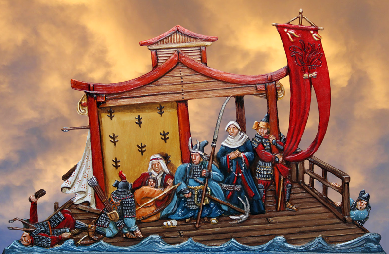 Die Figur zeigt die letzten Minuten des Taira-Clans, auch bekannt unter den