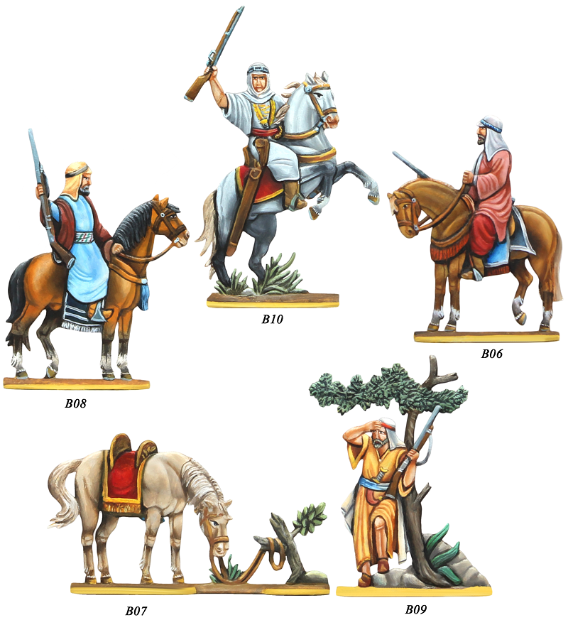 Serie Nr. 12 „Lawrence von Arabien in Begleitung arabischer Reiter“![]() Zeichnung: Fritz Gorges Gravur: Regina Sonntag Für eine größere Darstellung klicken Sie auf das Bild. • KK B06: Arabischer Reiter • KK B07: Lediges Pferd • KK B08: Arabischer Reiter • KK B09: Abgesessener Reiter • KK B10: Lawrence von Arabien Thomas Edward Lawrence (geboren 16. August 1888 in Tremadoc, Wales; gestorben 19. Mai 1935 in Clouds Hill, England), bekannt als Lawrence von Arabien, war britischer Archäologe, Geheimagent und Schriftsteller. Bekannt wurde Lawrence vor allem durch seine Beteiligung an dem von den Briten forcierten Aufstand der Araber gegen das Osmanische Reich während des Ersten Weltkrieges. ![]() Für eine größere Darstellung klicken Sie auf das Bild. Arabische Pferde haben einige typische Merkmale, die sie von anderen Pferderassen unterscheiden. Das beginnt bereits beim Körperbau. Sie haben zum Beispiel ein viel kleineres Maul, als andere Pferderassen und eine Halswölbung, die eine völlige Bewegungsfreiheit des Kopfes ermöglicht. Diese ist durch die Tatsache bedingt, dass der sehr zierliche Kopf ungewöhnlich hoch am Hals sitzt. Der Araber wirkt sehr zierlich, ist aber enorm leistungsstark. Er hat starke Lungen und eine große Ausdauer. Das Pferd ist sehr schnell und ausdauernd. Araberpferde sind nicht besonders groß, sie erreichen normalerweise ein Stockmaß von 150 bis 155 cm. Den Stuten der arabischen Pferde wird nachgesagt, dass sie niemals fremde Menschen anwiehert, weshalb man sich mit ihnen leicht dem Feind nähern konnte, ohne dass dieser gewarnt wurde. So konnten früher viele Angriffe mit den Araberstuten bei Auseinandersetzungen der Beduinen durchgeführt werden. Farben: Braune, Füchse und Schimmel sind am häufigsten, Rappen sind selten, Schecken gibt es nicht. Historische Schriften zitieren den Propheten Mohammed: „Das Glück des Pferdes liegt in der Fuchsfarbe. Und das Beste aller Pferde ist der Fuchs.“ Dazu passt auch das arabische Sprichwort: „Falls man dir sagt, ein fuchs-farbenes Pferd sei geflogen, so glaub’s.“ Der Fuchs stand für die Farbe Rot und symbolisierte dadurch den Vollmond, die Göttin der Liebe, die Schlacht oder den Sommer. Schwarz: Die Farbe des abnehmenden Mondes, der Göttin des Todes, des Unglücks. |